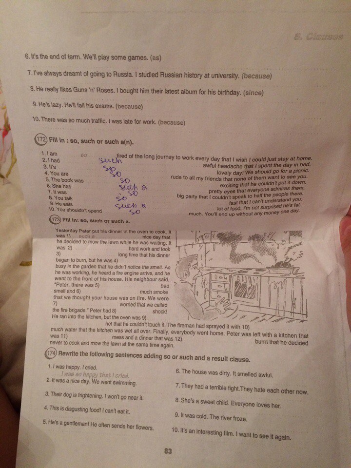 6. As it's the end of term we'll play some games.7. I studied Russian history at university because I've always dreamt of going to Russia.8. He really likes Guns 'n' Roses since I bought him their latest album for his birthday.9. He'll fall his exams because he's lazy.10. I was late for work because there was so much traffic.
